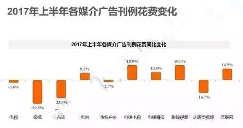 戶外媒體與“場景”和“場所”的連接成為決定其價值的重要因素。根據(jù)CTR媒介智訊《2017年上半年各媒介廣告刊例花費(fèi)變化》顯示,影院視頻、電梯海報、電梯電視成為了三種增長最快的媒介形態(tài),而報紙、雜志和交通類視頻則是三種降幅最大的媒介形態(tài)。